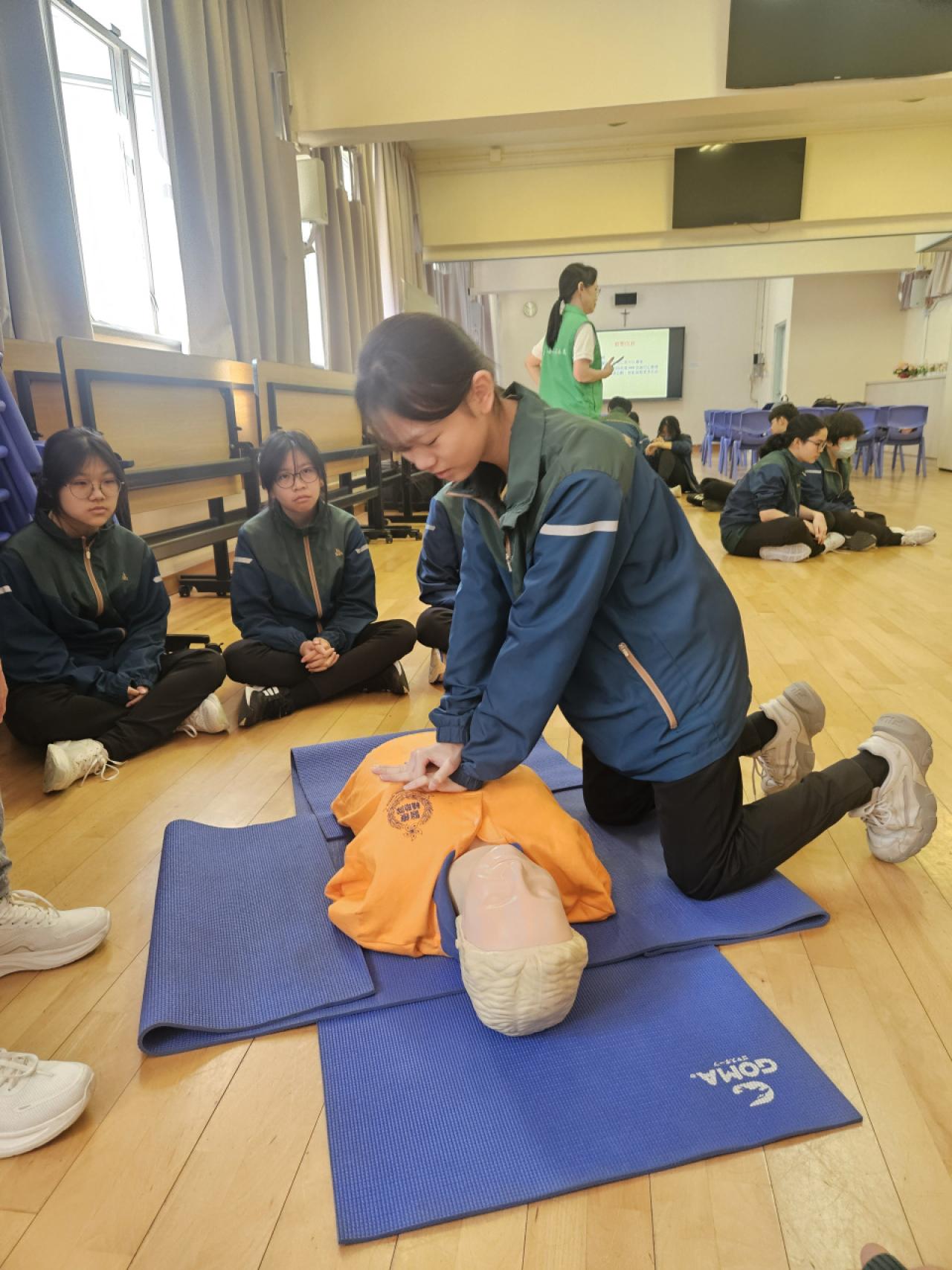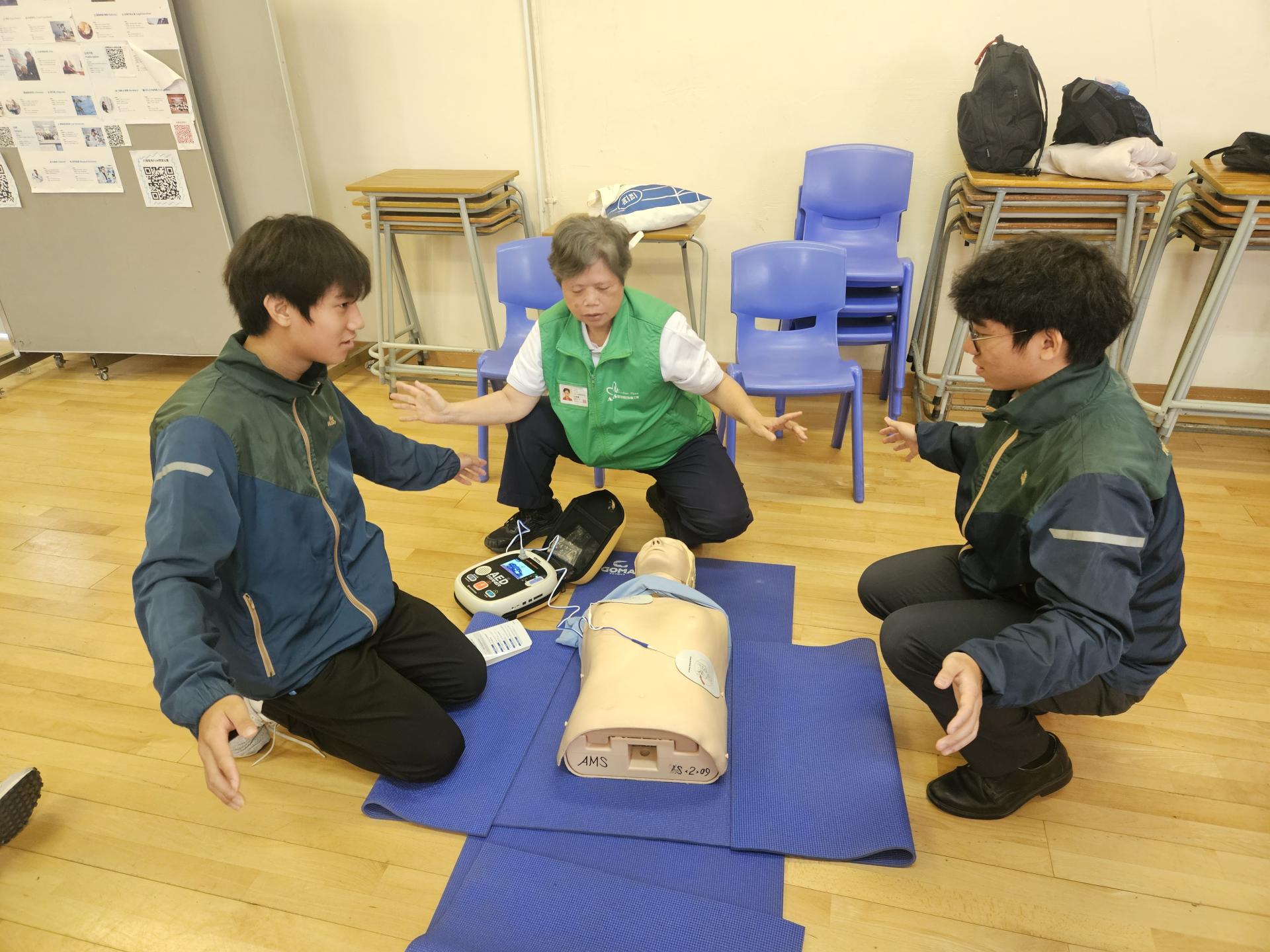 學生領袖代表,於本學年三月份接受醫療輔助隊的培訓,學習心外壓及使用俗稱AED的心臟去顫器等急救知識與技巧,裝備助己助人的良好品格及人生態度。一眾學員完成培訓,成功獲發證書嘉許。