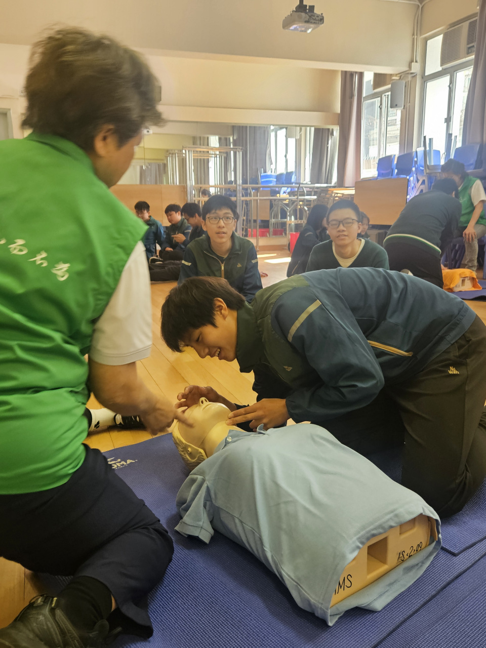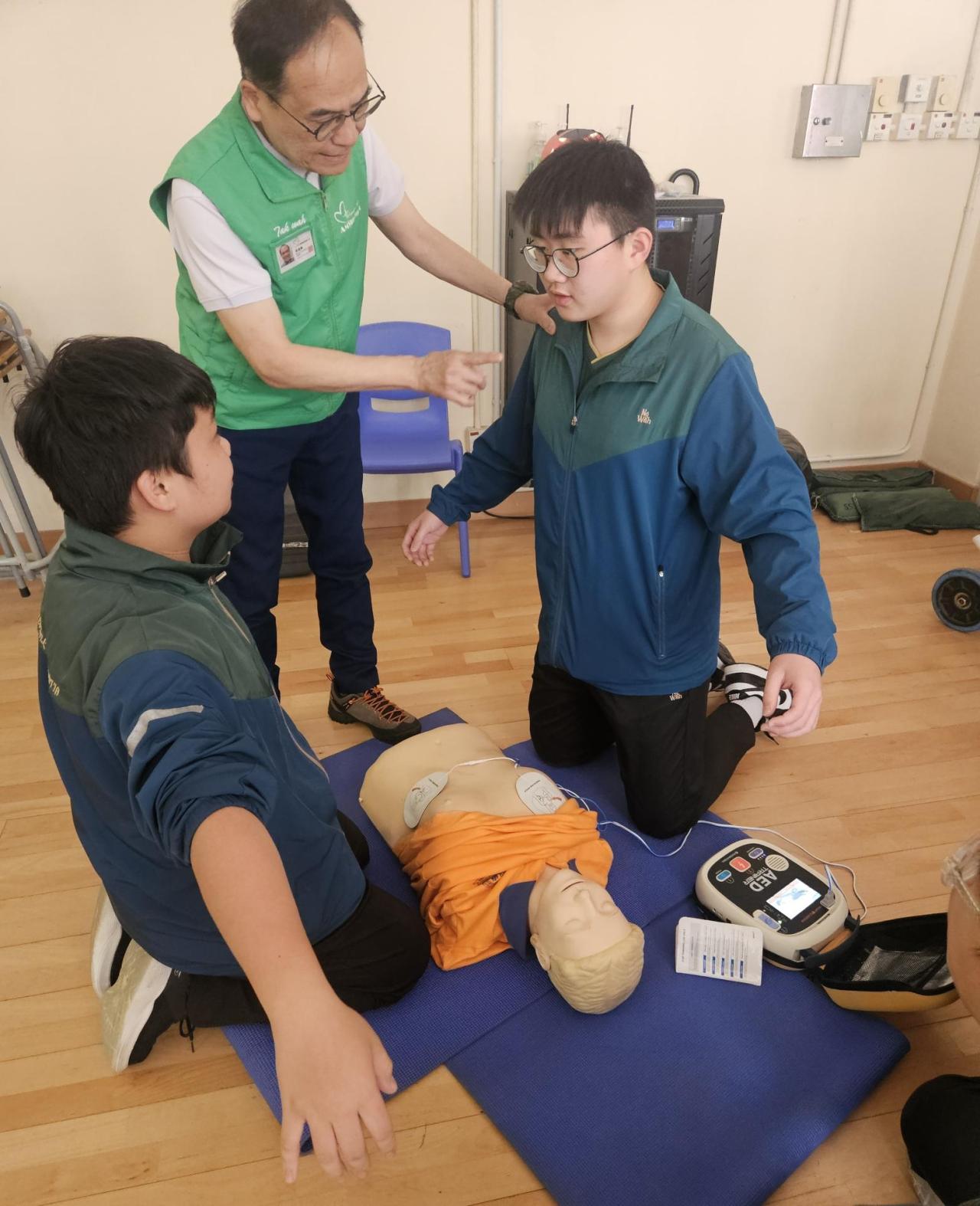學生領袖代表,於本學年三月份接受醫療輔助隊的培訓,學習心外壓及使用俗稱AED的心臟去顫器等急救知識與技巧,裝備助己助人的良好品格及人生態度。一眾學員完成培訓,成功獲發證書嘉許。