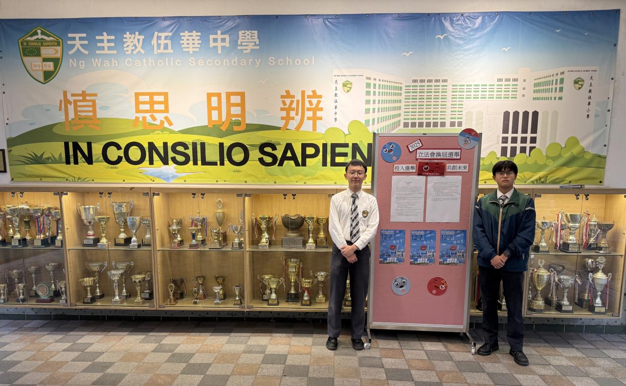 《憲法》和《基本法》學生校園大使分別製作展板介紹「愛國者治港」的原則及透過校園布置,動員同學鼓勵家人親友履行公民責任,踴躍投票。