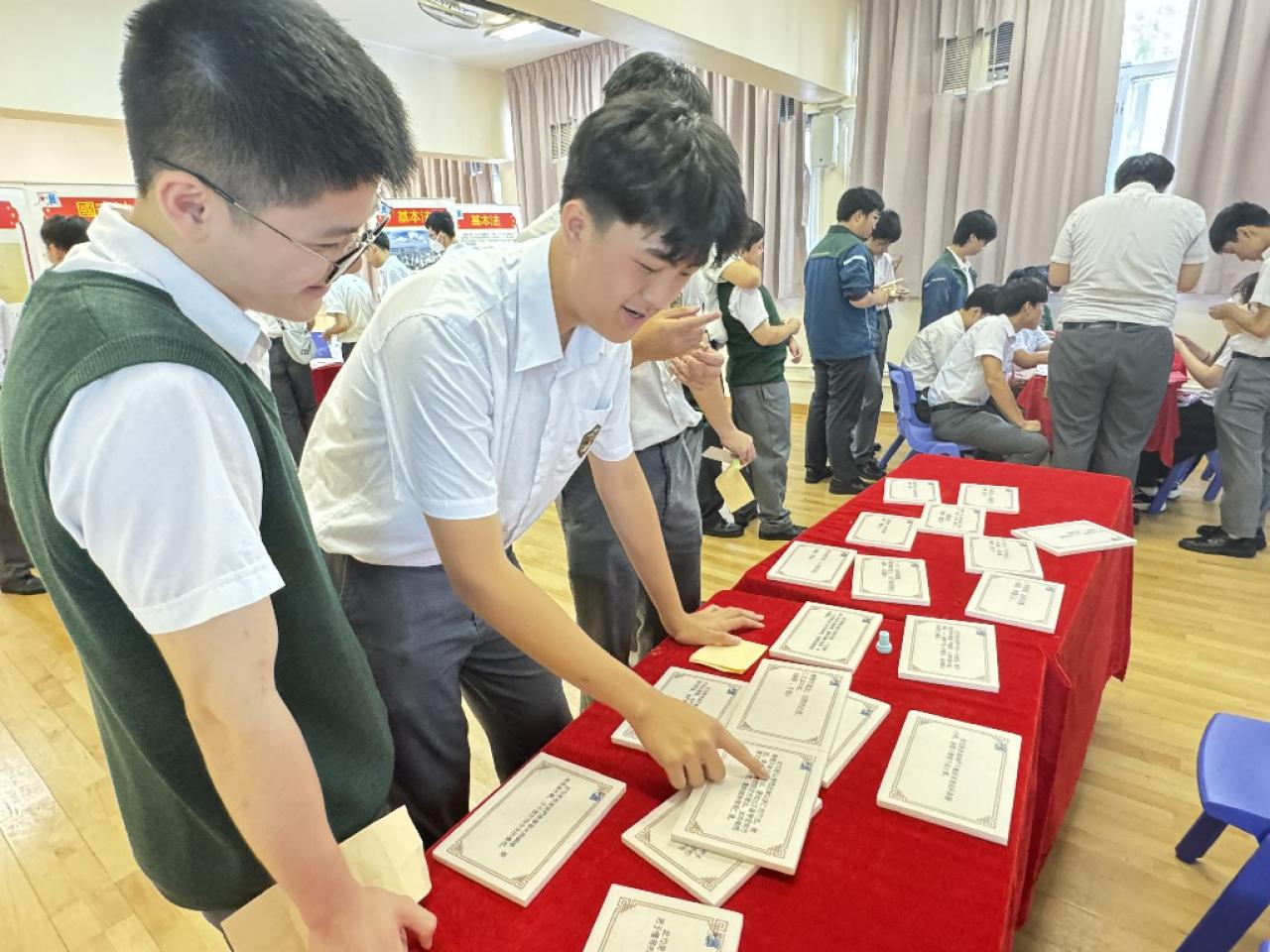 2025-07-07 中文組於7月7日舉行中華文化日,活動為同學提供各式各樣的中華文化傳統遊戲及體驗,例如抛沙包、鐵滾環、麪粉公仔和手工剪紙等,亦有加強同學對國家安全及基本法認識的互動遊戲,國安卡牌配對。同學投入參與各個攤位活動,讓同學在互動遊戲和體驗活動中認識中華傳統文化的魅力,藉此加強同學的國民身份認同及文化自信。 活動剪影