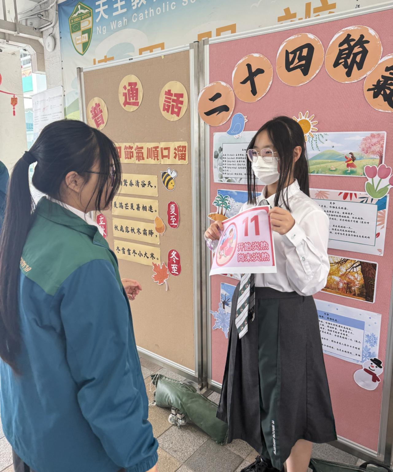 2025-09-02 爲加强學生對二十四節氣習俗的認識,在中文周普通話科舉辦「二十四節氣文化活動」,通過跳房子和順口溜大比拼的遊戲,學生能夠用普通話表達二十四節氣的順序和特徵,還能提升學生對傳統二十四節氣文化的認識。 活動剪影