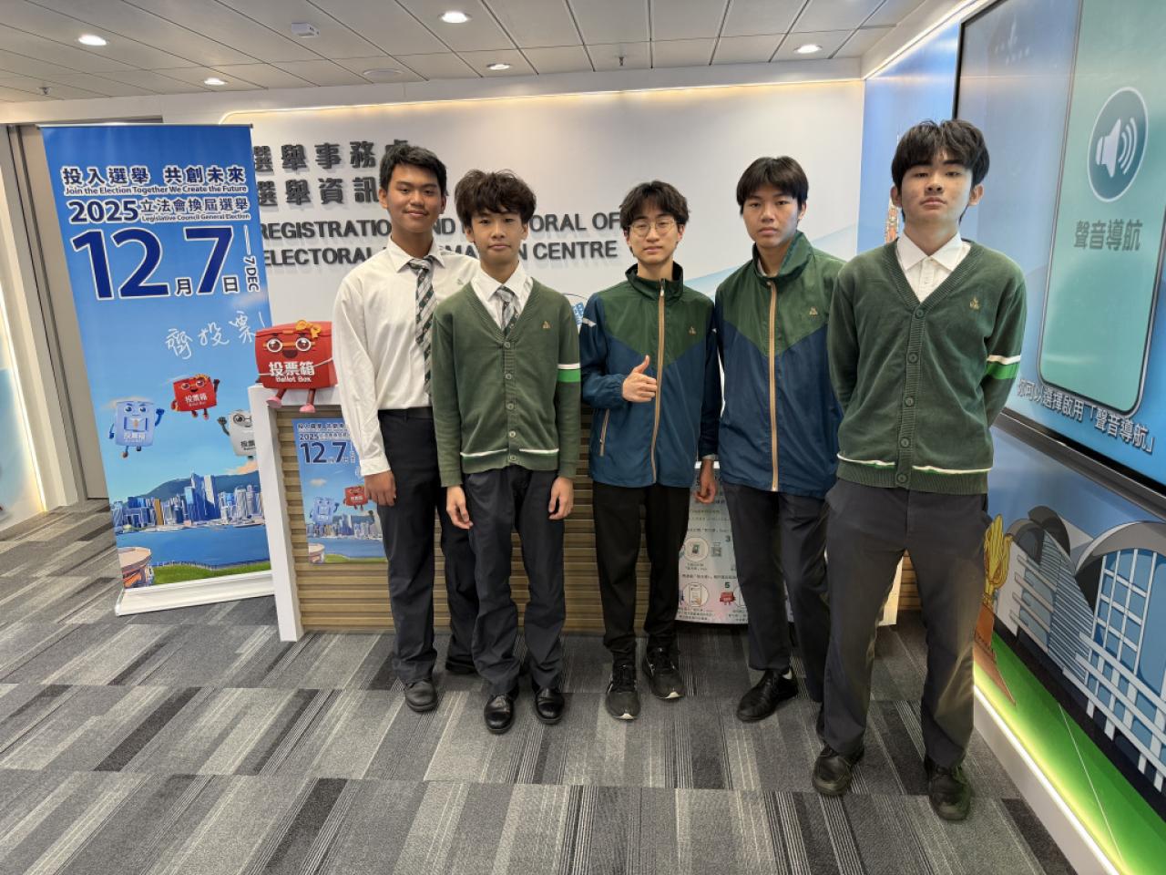 2025-11-22 《憲法》和《基本法》學生校園大使於11月22日參觀選舉資訊中心,選舉事務處人員講解各項選舉資訊,包括香港特別行政區的選舉制度、選管會職能、投票過程及點票程序,讓他們對籌備整個選舉的過程有更深入的認識。同時,大使亦參與了選舉資訊中心內不同的互動遊戲,活動加強他們對國民身分的認同及加深他們的公民責任。 活動剪影